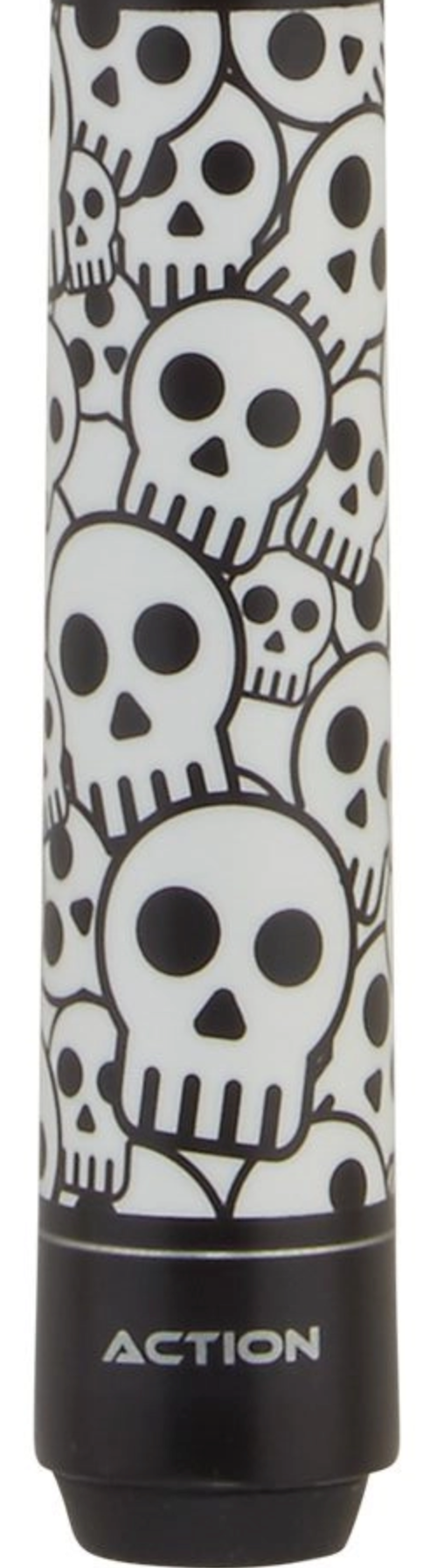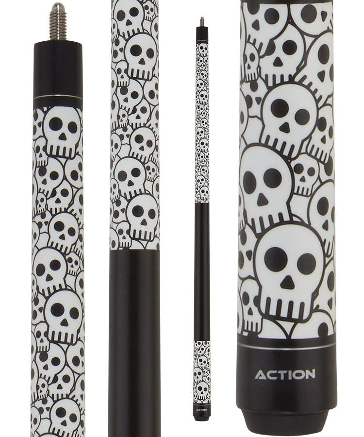 The Action JR18 52" is a Junior pool stick made for the young player looking for their first cue stick. This cue has a matte finish with skull graphic and no wrap matte black handle, as well as a standard 5/16 x 18 pin and 12.5mm hard rock maple shaft.