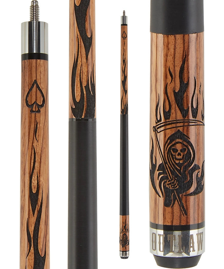 "As the best selling cue of its kind, it's no surprise Outlaw is the originator of wood burning technology, at the leading edge of "blow torch branding" techniques. Tribal markings and tattoo designs make Outlaw stand out like the solitary cowboy riding toward the horizon." - Outlaw
