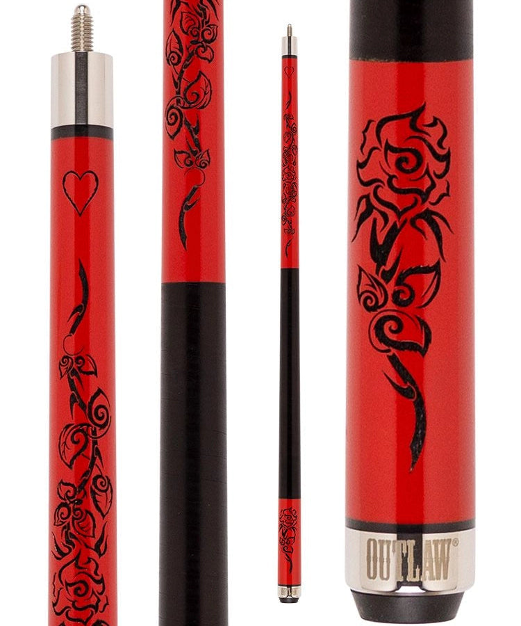 "As the best selling cue of its kind, it's no surprise Outlaw is the originator of wood burning technology, at the leading edge of "blow torch branding" techniques. Tribal markings and tattoo designs make Outlaw stand out like the solitary cowboy riding toward the horizon." - Outlaw