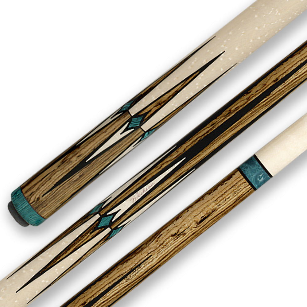 The Pechauer P13-N Pool Cue is a masterpiece of design, featuring a rich Bocote body. It is intricately detailed with simulated Ebony-framed points that blend figured Maple and Bocote, matched with a figured Maple handle. Malachite diamond inlays add a luxurious touch, combining exquisite materials for a cue that is as visually stunning as it is functional. This cue is a true symbol of sophistication and precise craftsmanship.