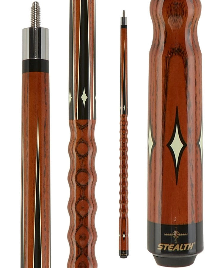 This innovative design rolls and hooks like a regular cue. The cue reduces the likelihood of sweaty palms from gripping the cue too tightly and eliminates the slip stroke. Dooley cues are forward balanced and come standard with 13 mm. shafts and adjustable weight bolts." -Stealth Cues
