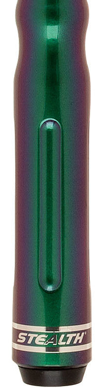 The Stealth STH430 Metallic Rainbow Pool Cue is a captivating standout from Stealth's lineup, featuring a stunning chameleon-style metallic rainbow finish that shifts colors—often from green to purple—under different lighting for an eye-catching, iridescent effect. This premium playing cue boasts a 29-inch Canadian hard rock maple shaft topped with a 12.5mm 5-layered tip and durable white Bakelite ferrule, ensuring low deflection, consistent hits, and excellent cue ball control.