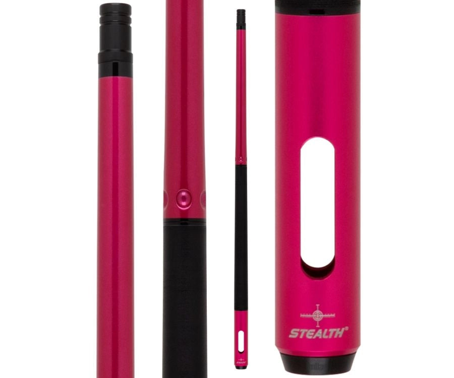 The Stealth STH502 from the Aluminum Series is a striking, versatile playing cue that combines bold style with Stealth's signature performance features. Finished in vibrant metallic pink with a unique notched aluminum sleeve, it delivers eye-catching aesthetics while maintaining exceptional playability. The 29-inch Canadian hard rock maple shaft features a 12.5mm 5-layered leather tip and white ferrule for precise control, consistent hits, and reliable cue ball response.