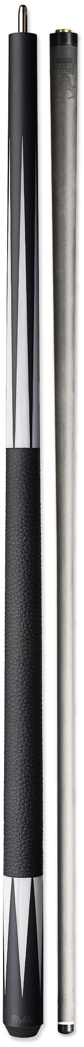 Features a black matte with 6 white points on both forearm and buttsleeve with a black pebble leather wrap, and comes with a 16 inch Pro Tapered Carbon Shaft with Cross Lateral Technology.