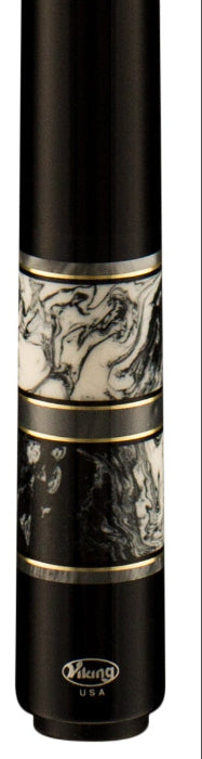 Experience the sleek power of the Viking Defender DF0102, where midnight-black Northwoods Maple meets eye-catching Venetian Marble and Smoke Pearl inlays for a cue that turns heads at the table. The wrapless design gives you that pure, unfiltered feel serious players crave, while the ViKORE Shaft keeps your shots laser-focused with minimal deflection with reactive internal core in the front of the shaft plus Softouch® dampening. Viking bores out the front section of the maple shaft and fills it with a lighter core material, which lowers front‑end mass for reduced deflection and a more “springy” transfer of energy into the cue ball. The internal dampeners cut down on vibration and buzz, so you get enhanced power, a smoother feel, and better feedback on every shot. Quick-release joints mean you're ready to play in seconds, and knowing it's built right here in the USA with a lifetime warranty lets you focus on what matters—sinking balls and dominating the game.