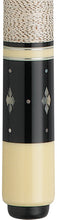 The forearm of the Balabushka GB22 pool stick is Birdseye maple with traditional ebony points and beautiful mother of pearl shell inlays in notched diamond shapes and circles on each point. The ebony sleeve continues the inlay designs. The brown speckled white Irish linen wrap adds style and function to this cue.