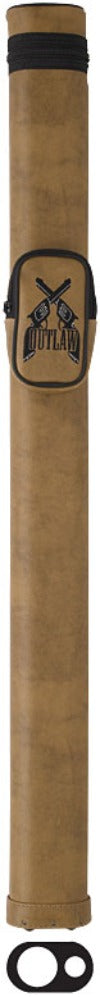 This 1 butt 1 shaft hard case has a stitched dual six shooter design on the pocket which moves freely up and down the exterior of the case for personal placement. The light tan brown color of this case reminds us of the dusty times of the Old West where Outlaws certainly keep their own shooters well protected.